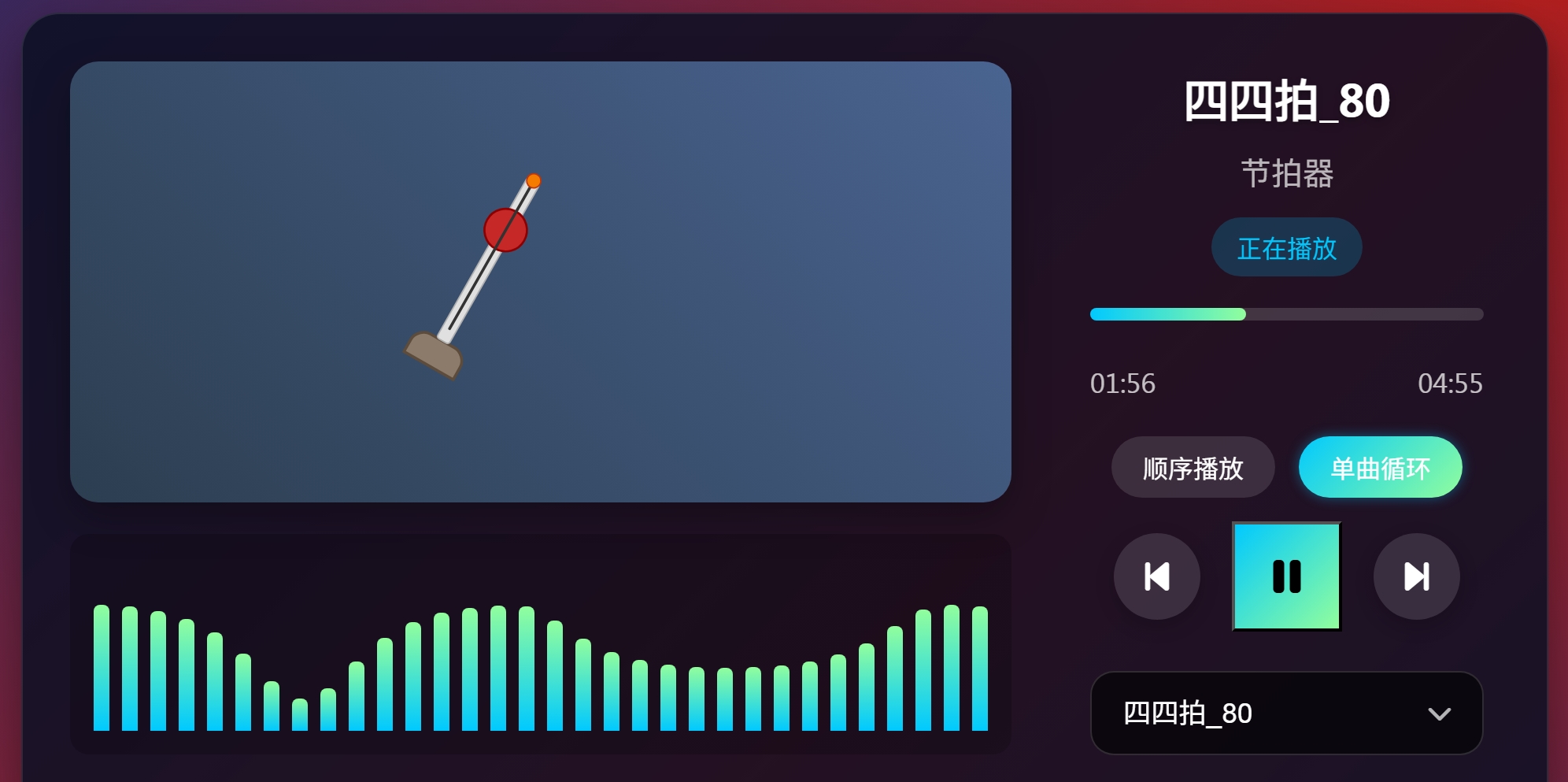 - 节拍模式切换:提供4/4、3/4、6/8等常用鼓点节拍类型